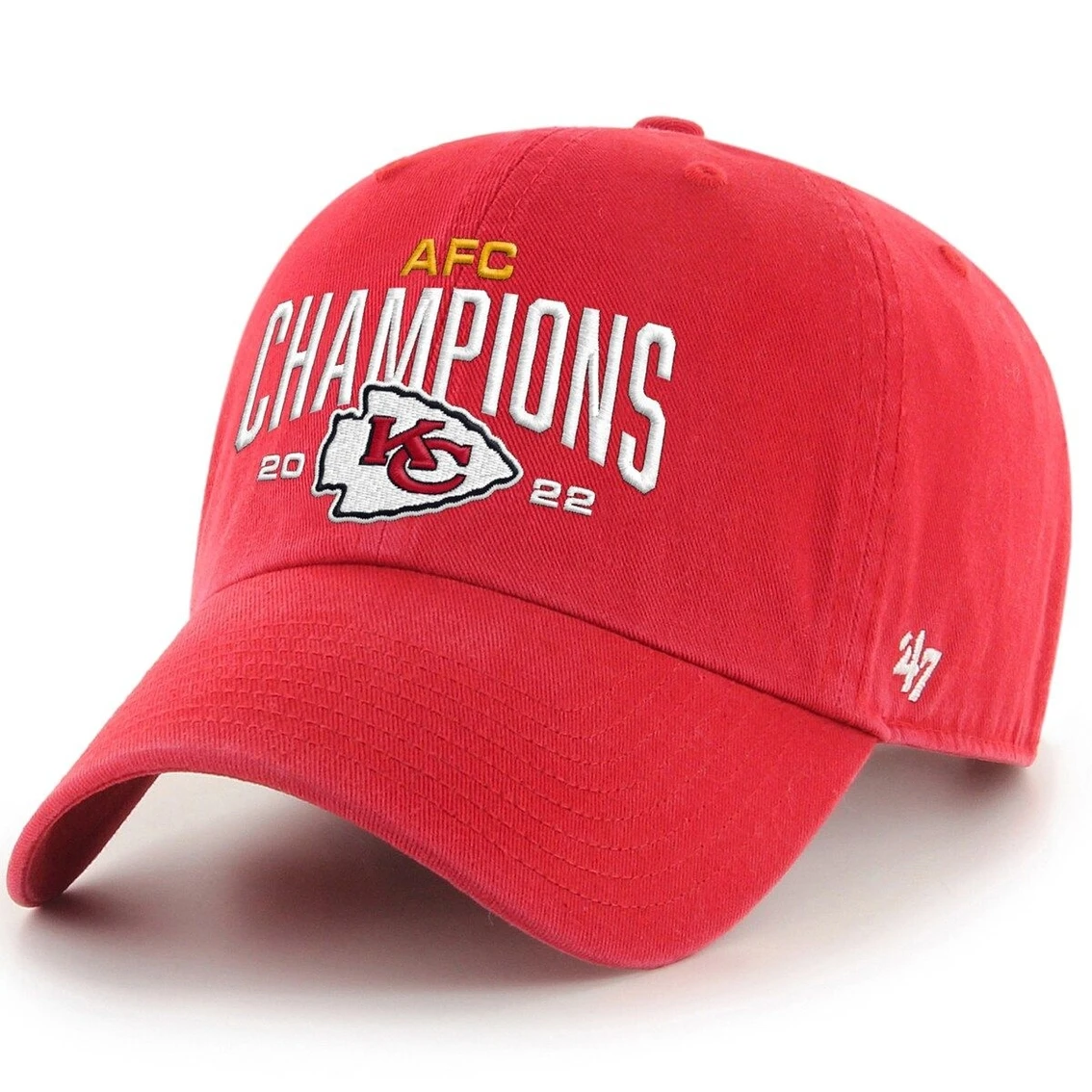 - The 2022 NFL season was an electrifying ride, and the excitement continues on the road to Super Bowl LVII! Celebrate a crucial Kansas City Chiefs victory by grabbing this 2022 AFC Champions Clean Up Adjustable Hat from ’47. It features commemorative graphics that will showcase your unwavering support for the Kansas City Chiefs in the Super Bowl and beyond.