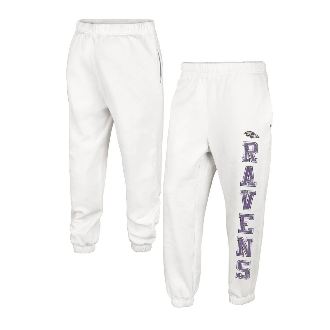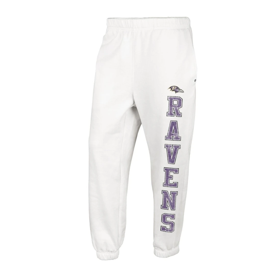 - When snuggling up for Baltimore Ravens game day, be sure to make these Harper joggers from ’47 part of your outfit. Not only do they provide warmth, but they have an elastic waistband to give you your desired fit during every wear. The distressed team graphics on the leg are perfect for making your Baltimore Ravens fandom undeniable.