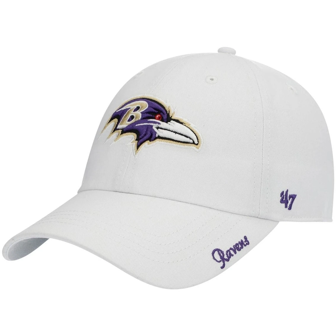 - Feature a fresh-looking touch in your game day outfit by putting on this Miata Clean Up adjustable hat from ’47. It boasts a large Baltimore Ravens logo in the center to make your fanaticism easily noticeable and the added small detail of the team name on the bill. You’ll move this Baltimore Ravens cap to the top of your rotation after the first wear.