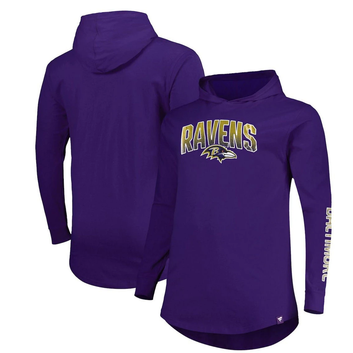 - When the temperature drops, raise your game with this Baltimore Ravens Front Runner hoodie from Fanatics Branded. The bold graphics and droptail hem create a look that won’t miss on game day. Look as good as you feel after a crucial Baltimore Ravens touchdown when you sport this pullover.