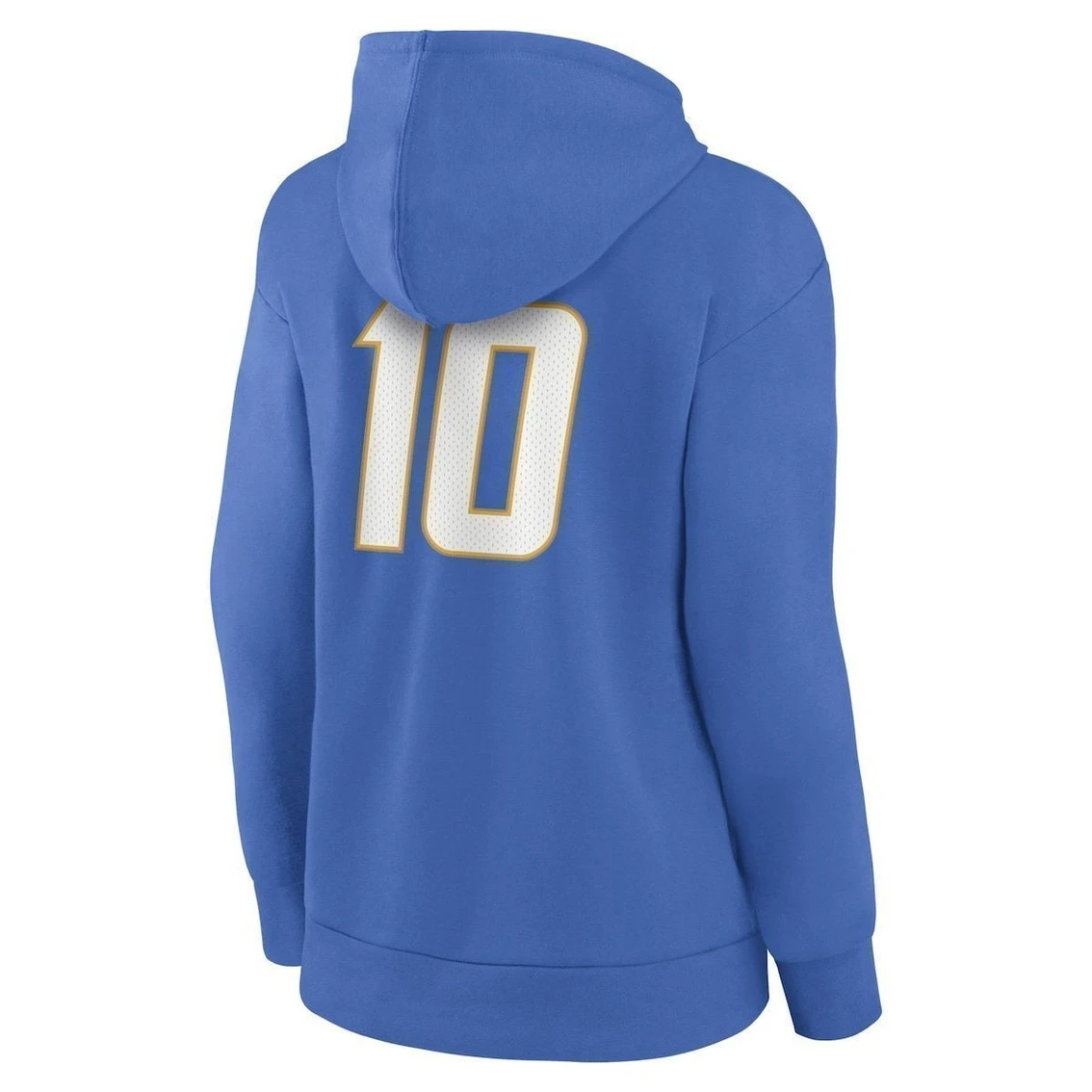 Fanatics Branded Women's Justin Herbert Powder Blue Los Angeles Chargers Player Icon Name & Number V-Neck Pullover Hoodie