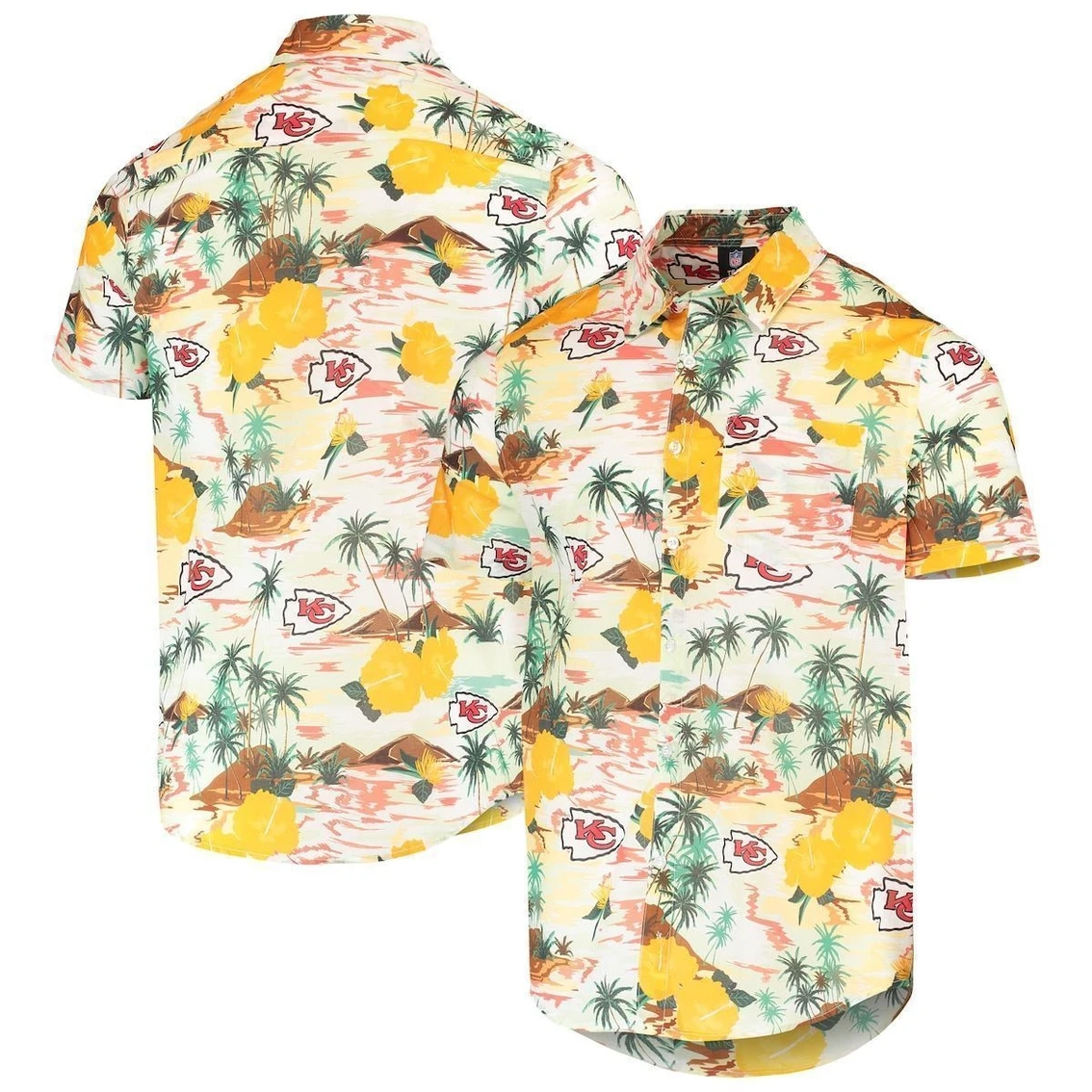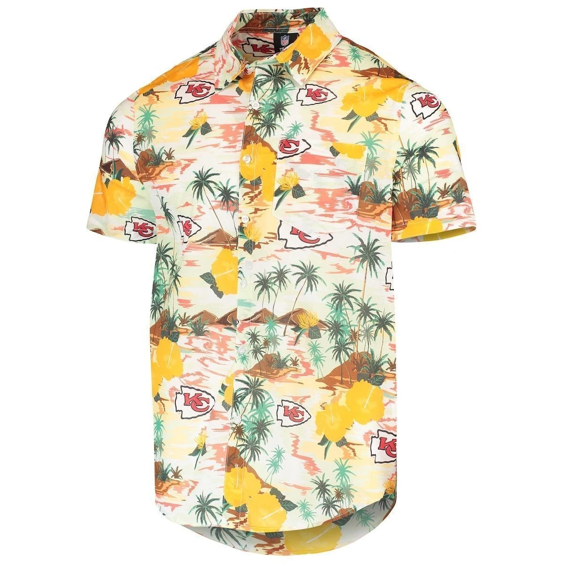 - Bring together vacation vibes and your Kansas City Chiefs spirit by wearing this Paradise Floral button-up shirt from FOCO. Its allover pattern features Kansas City Chiefs graphics and a tropical print that catches the eye. Plus, the rounded hem creates a more relaxing fit.