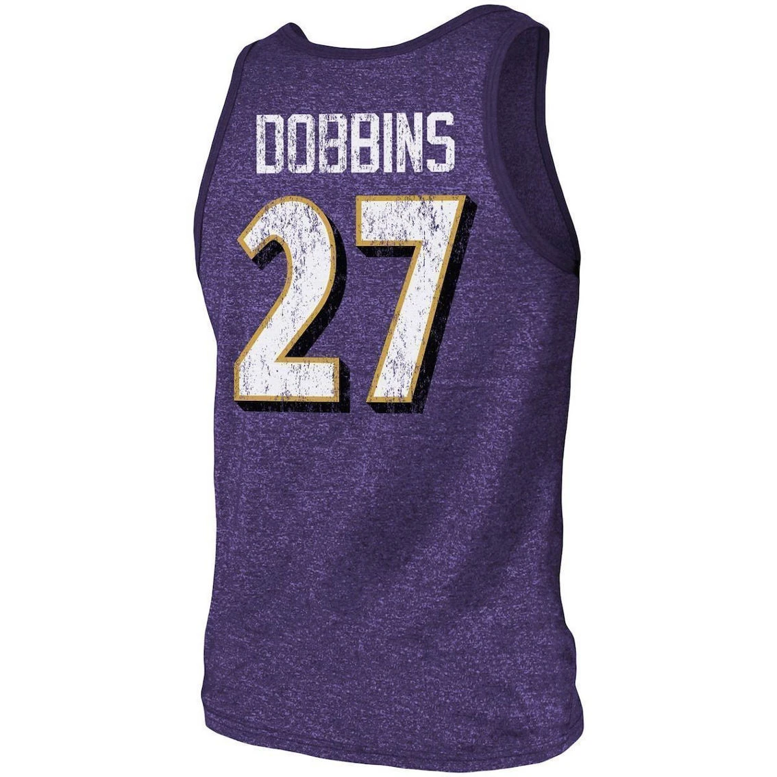 - Ensure everybody knows who your favorite NFL player is by putting on this J.K. Dobbins Name and Number tank top from Majestic Threads. Its features the Baltimore Ravens logo printed on the front and J.K. Dobbins graphics on the back, both in a distressed-looking design. The tri-blend material will also feel super soft, making this sleeveless shirt really comfortable to wear.