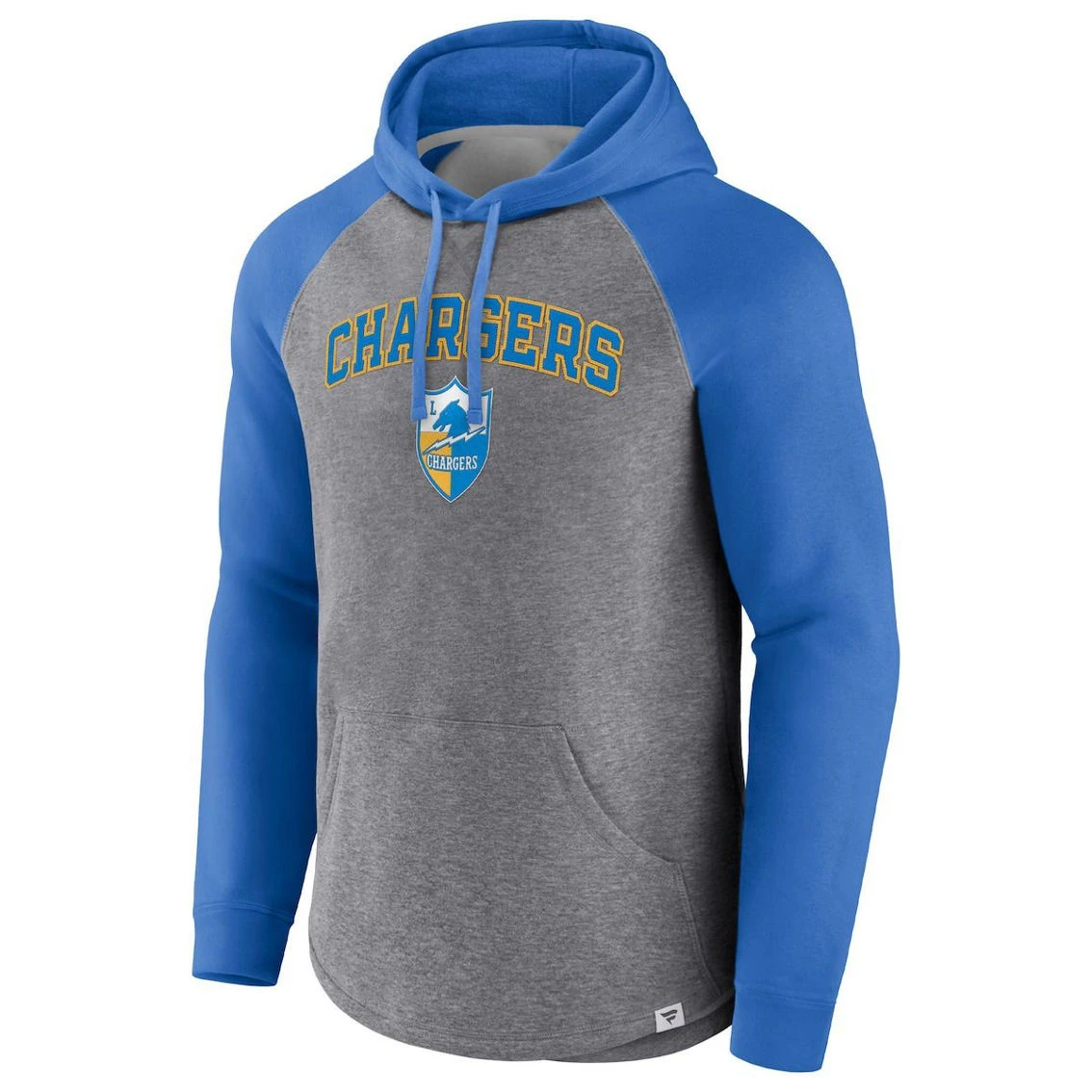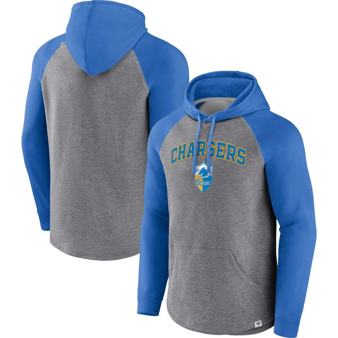 - Draw the eye to your Los Angeles Chargers loyalty when you sport this By Design pullover hoodie from Fanatics Branded. Its contrasting raglan sleeves that create more flexible arm movement highlight the smooth Los Angeles Chargers graphics stitched on heathered fabric. Plus, an adjustable hood and classic pouch pocket provide extra warmth.