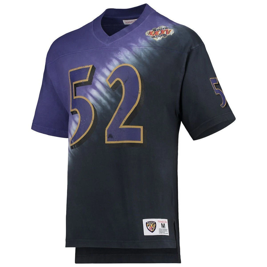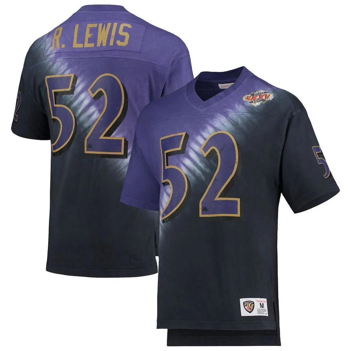 - Pay homage to NFL legend Ray Lewis and the Baltimore Ravens with this Retired Player Name & Number Diagonal T-Shirt from Mitchell & Ness. The distressed graphics on the front go perfectly with the unique woven tie-dye design that is just as exhilarating as the highlight plays he would make. A V-neck adds fresh flair for when you honor Ray Lewis and all of the amazing years he had with the Baltimore Ravens.