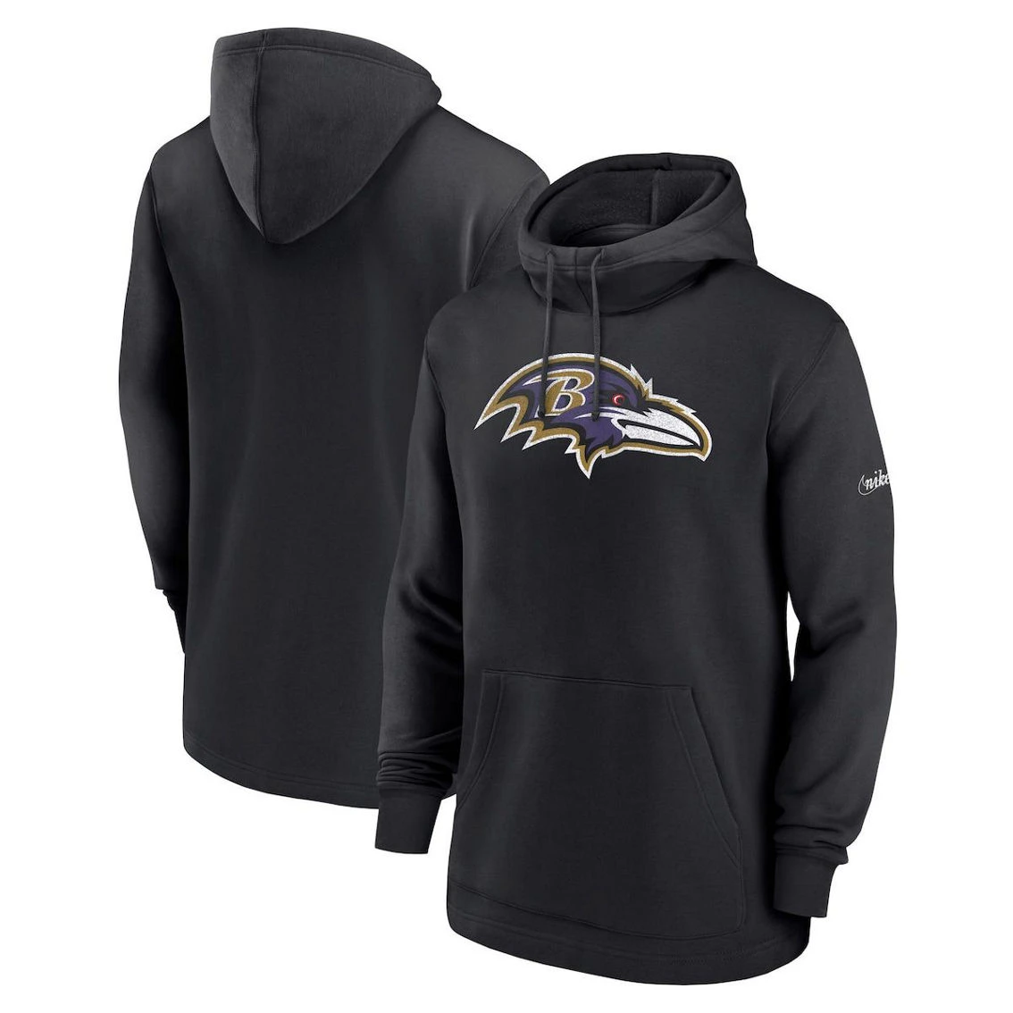 - Layer up in true Baltimore Ravens style by sporting this Nike pullover hoodie. It features distressed team graphics for a vintage feel. Plus, the blended fabric, midweight design and fleece lining work together to keep you cozy all day long.