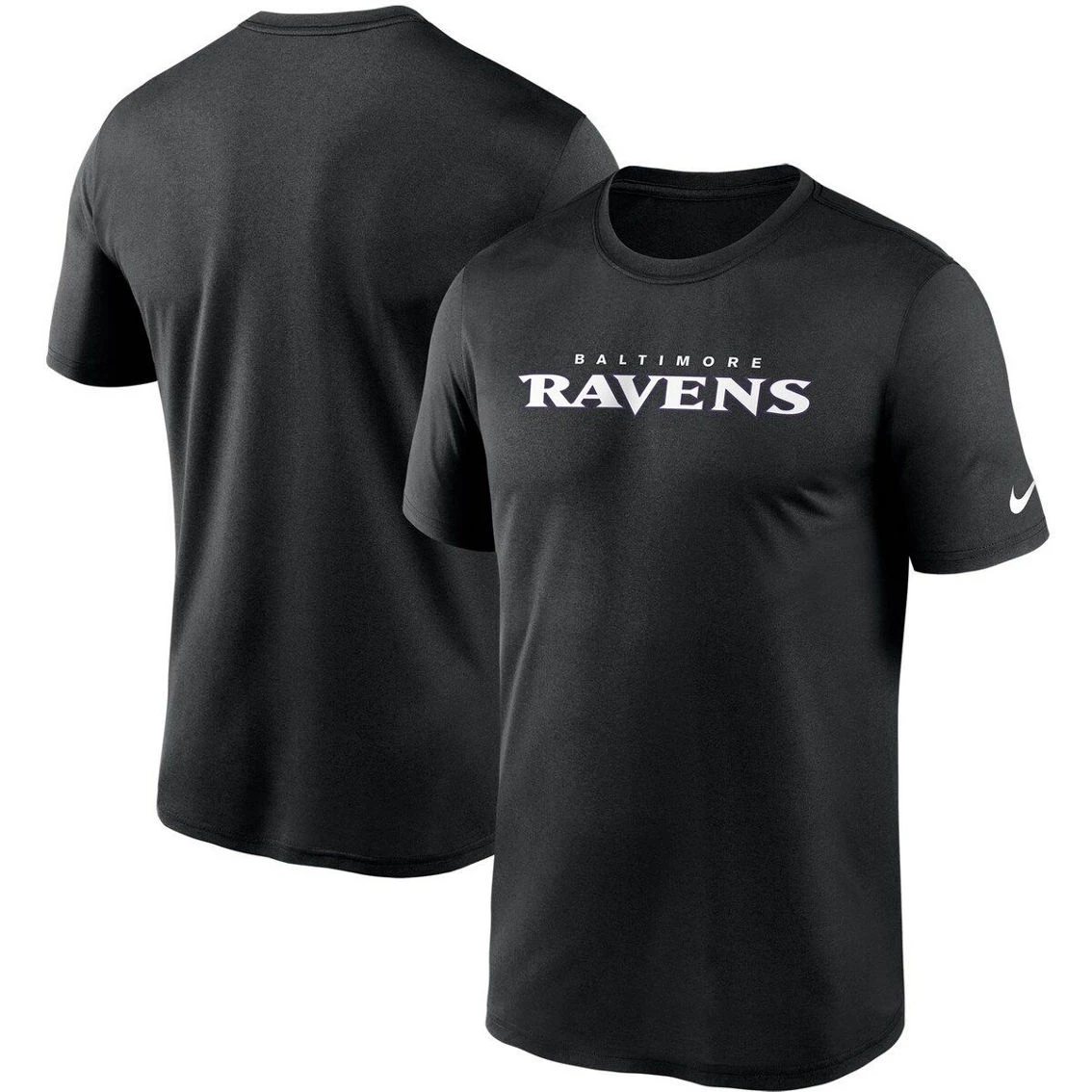 - Before all the thrilling action on the field kicks off, make sure everyone knows which team you’ll be rooting for by rocking this Baltimore Ravens Wordmark Legend T-shirt from Nike. The finely detailed graphics shout out your favorite team in the NFL, and the tee’s Dri-FIT technology helps keep you comfortable so that you can consistently cheer for your Baltimore Ravens after every big play.