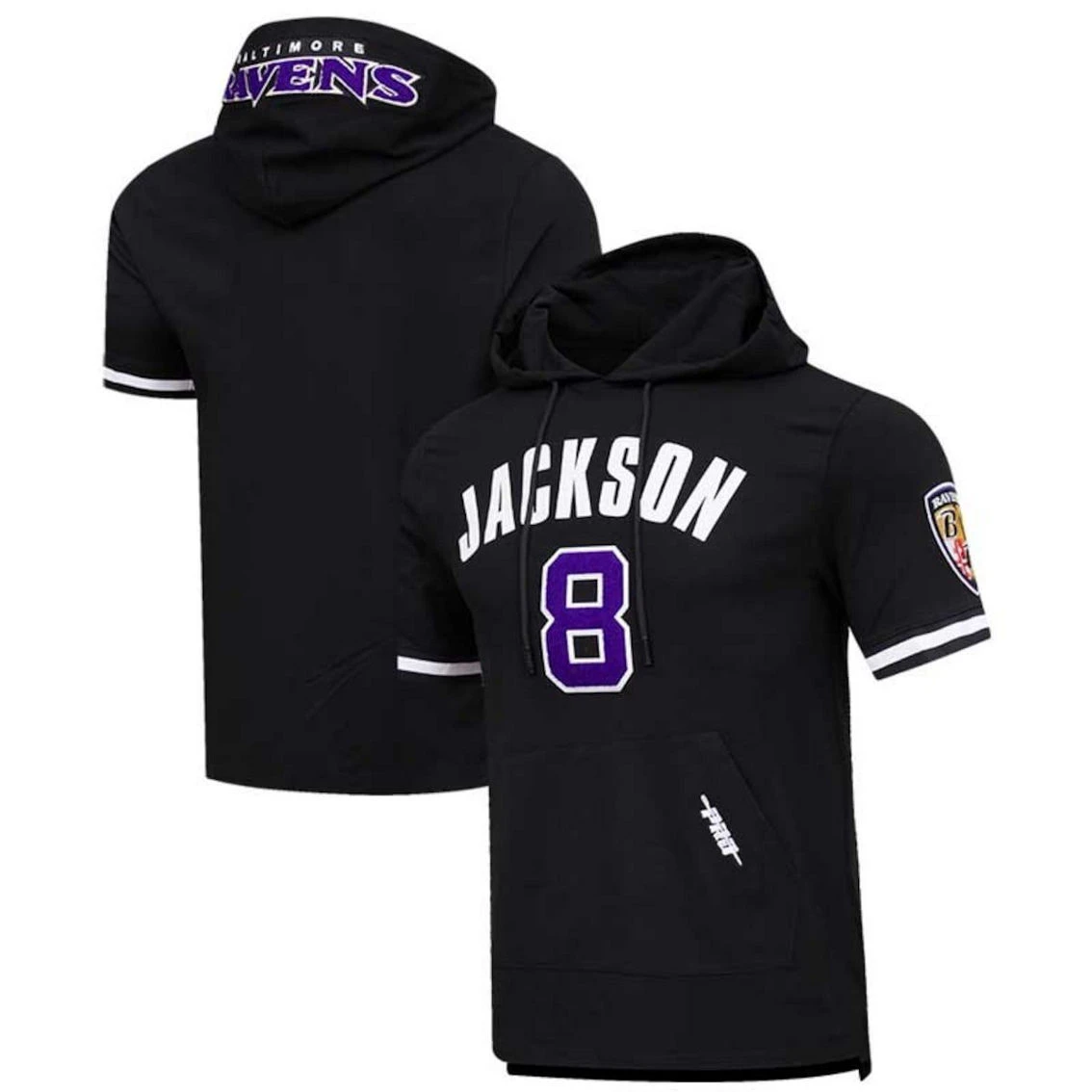 - Show your team spirit in a less traditional way with this Lamar Jackson Player hoodie T-shirt from Pro Standard. Its soft hood supplies coverage in case temperatures drop, while the front pouch easily holds your essentials. A bold Baltimore Ravens design with Lamar Jackson name and number details leaves no doubt about who you root for every Sunday.
