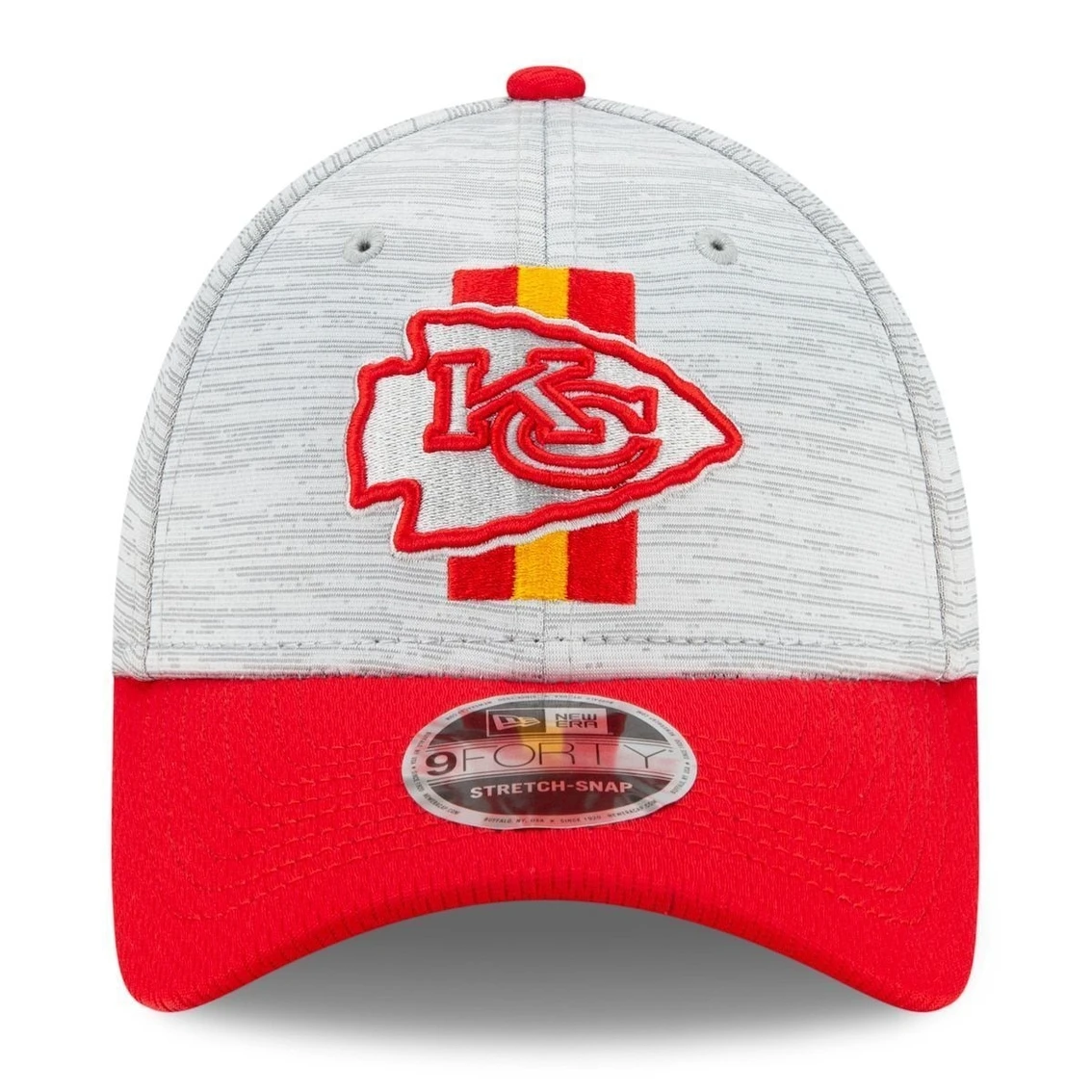 - New year, new goals. Start this summer and season off in style with the Official Training Camp Collection from New Era. This two tone Kansas City Chiefs 9FORTY stretch fit is constructed of grey Digi-Tech heather performance fabric with team color Dash Mark fabric on the visor. On the front crown an embroidered grey and team color logo is complimented by a uniform inspired pattern. Get ready for Kansas City Chiefs Training Camp today!