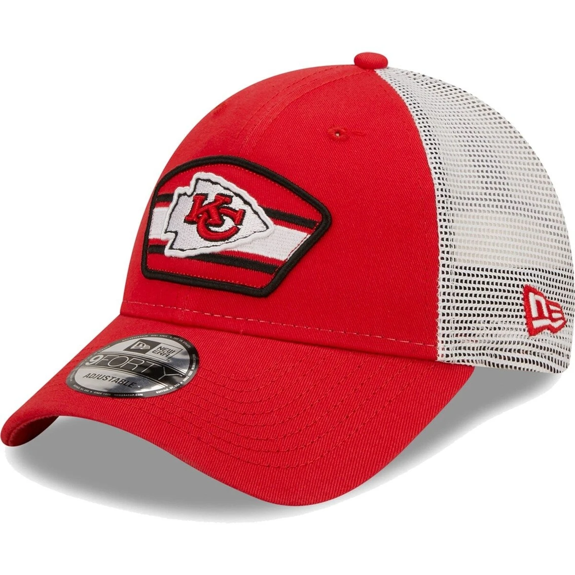 - Top your game day outfit off with a bold display of Kansas City Chiefs devotion with this Logo Patch Trucker 9FORTY hat from New Era. The embroidered Kansas City Chiefs applique on the front panels puts your fandom front and center, while the mesh mid and rear panels help you enjoy a cool breeze with ease. Plus, the snapback closure makes securing the perfect fit with each wear simple.