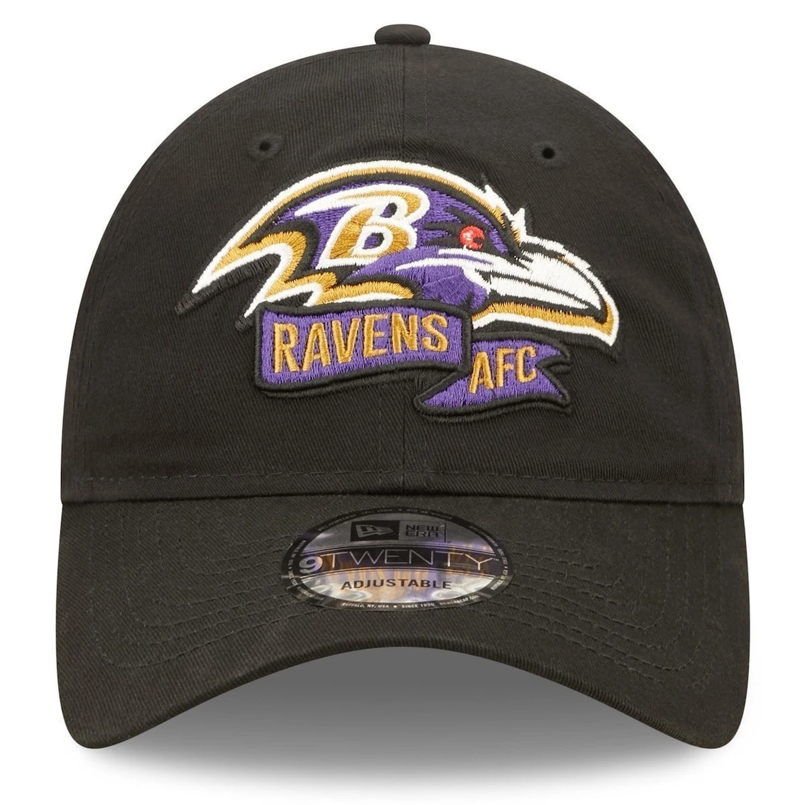 - Get your kiddo ready for the upcoming season with this Baltimore Ravens 2022 Sideline Adjustable 9TWENTY Hat. This New Era hat proudly displays an embroidered Baltimore Ravens logo on the front with the team’s name and conference banner underneath. The official NFL shield is embroidered on the side of the hat, in addition to a team logo on the woven tag by the adjustable strap, finalizing the spirited look that your young fan will see players and coaches wearing on the field throughout the 2022 season.