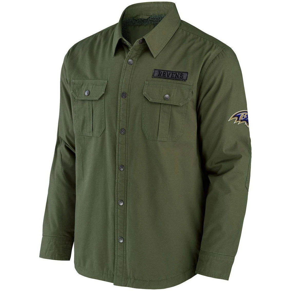 NFL X Darius Rucker Collection By Fanatics Men's Olive Baltimore Ravens Long Sleeve Button-Up Shirt Jacket