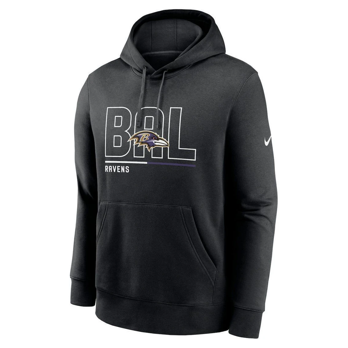 - Enjoy an added layer of warmth on cooler Baltimore Ravens game days with this City Code Club hoodie from Nike. It features a bold Baltimore Ravens logo and wordmark across the chest and a classic pullover design to help you cut through the cold. In addition, the fleece lining offers an extra bit of comfort that makes it a spirited piece to reach for before stepping out.