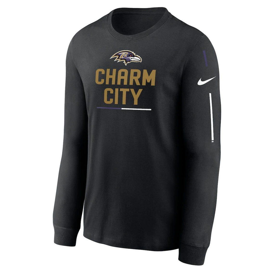 - Make your dedication to the Baltimore Ravens obvious by wearing this Team Slogan T-shirt from Nike. Its printed graphics feature a motto that represents the loyal Baltimore Ravens fanbase. The soft fabric also helps keep you feeling comfortable in cooler weather.