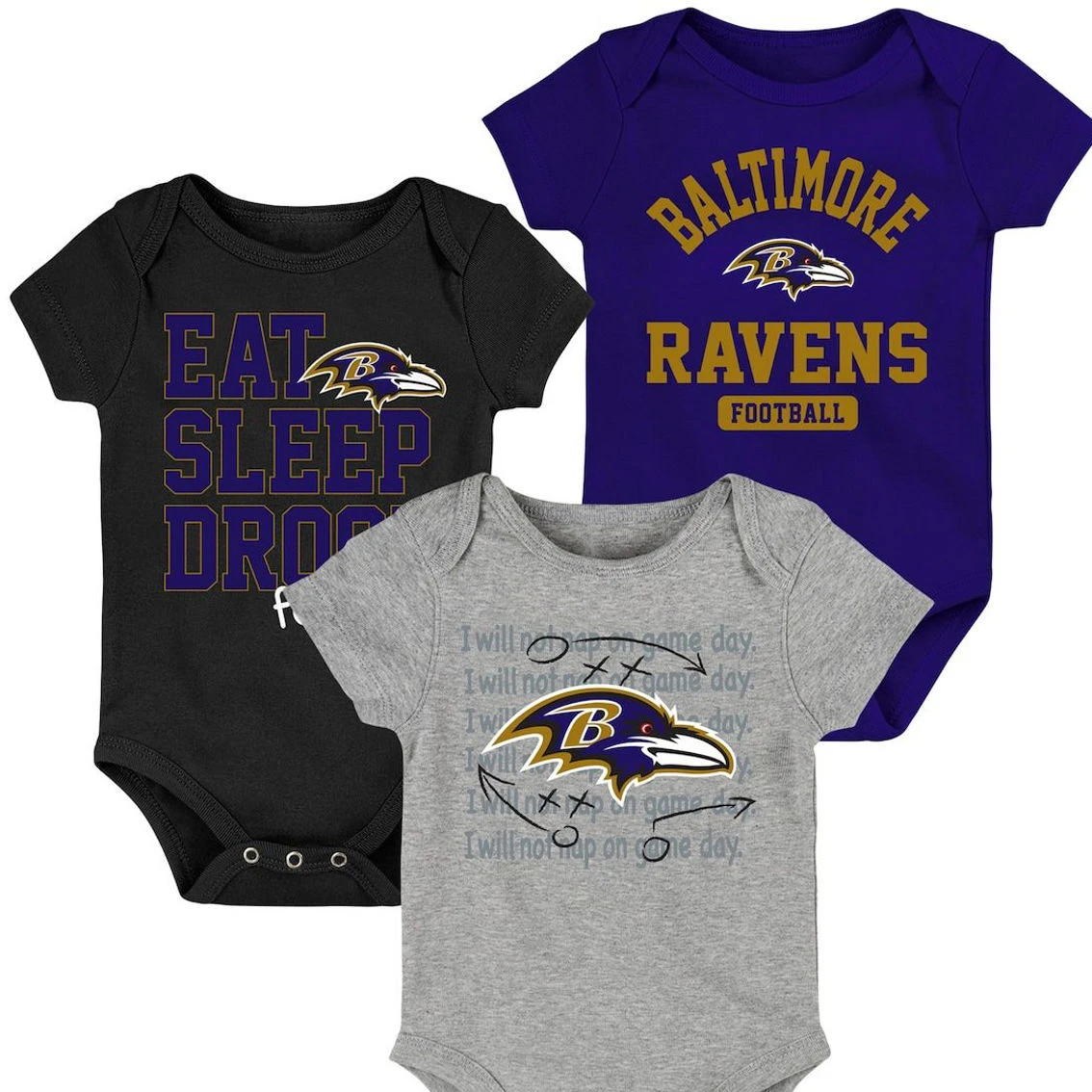 - Your little one livens up your life, and now you can get this Baltimore Ravens Eat, Sleep, Drool Football three-piece bodysuit set so they look even more adorable for game day!