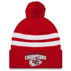 New Era Men's Red Kansas City Chiefs 2022 AFC West Division S Top Stripe Pom Cuffed Knit Hat
