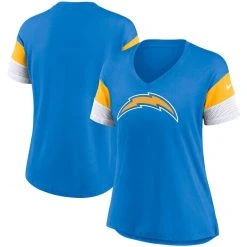 Nike Women's Powder Blue Los Angeles Chargers Team Logo Fashion Performance Tri-Blend V-Neck T-Shirt