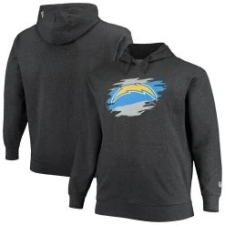 New Era Men's Charcoal Los Angeles Chargers Big & Tall Primary Logo Pullover Hoodie