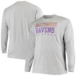 Fanatics Branded Men's Heathered Gray Baltimore Ravens Big & Tall Practice Long Sleeve T-Shirt