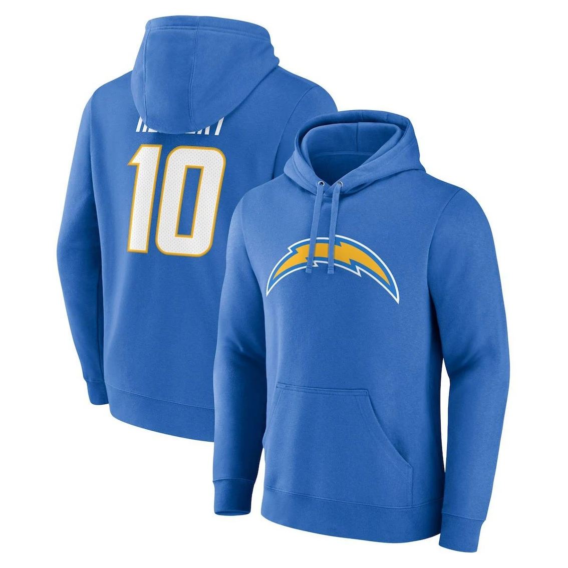 - Showcase your love for Justin Herbert and the Los Angeles Chargers with this Name & Number hoodie. Featuring bold graphics and player details, this pullover is perfect for showing your fandom in chillier weather. The fleece lining adds an extra layer of warmth to keep you comfortable and cozy on game day.