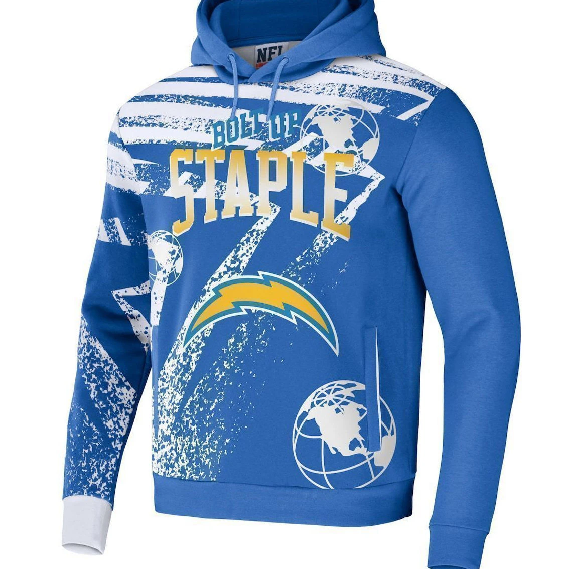 - Celebrate 25 years of streetwear from Staple by grabbing this Los Angeles Chargers NFL x Staple Collection All Over Print Pullover Hoodie. The bold graphics embody the intersection of sport and design through the lens of street culture. Rep your team with this exclusive collection that features unmistakable Los Angeles Chargers insignia.