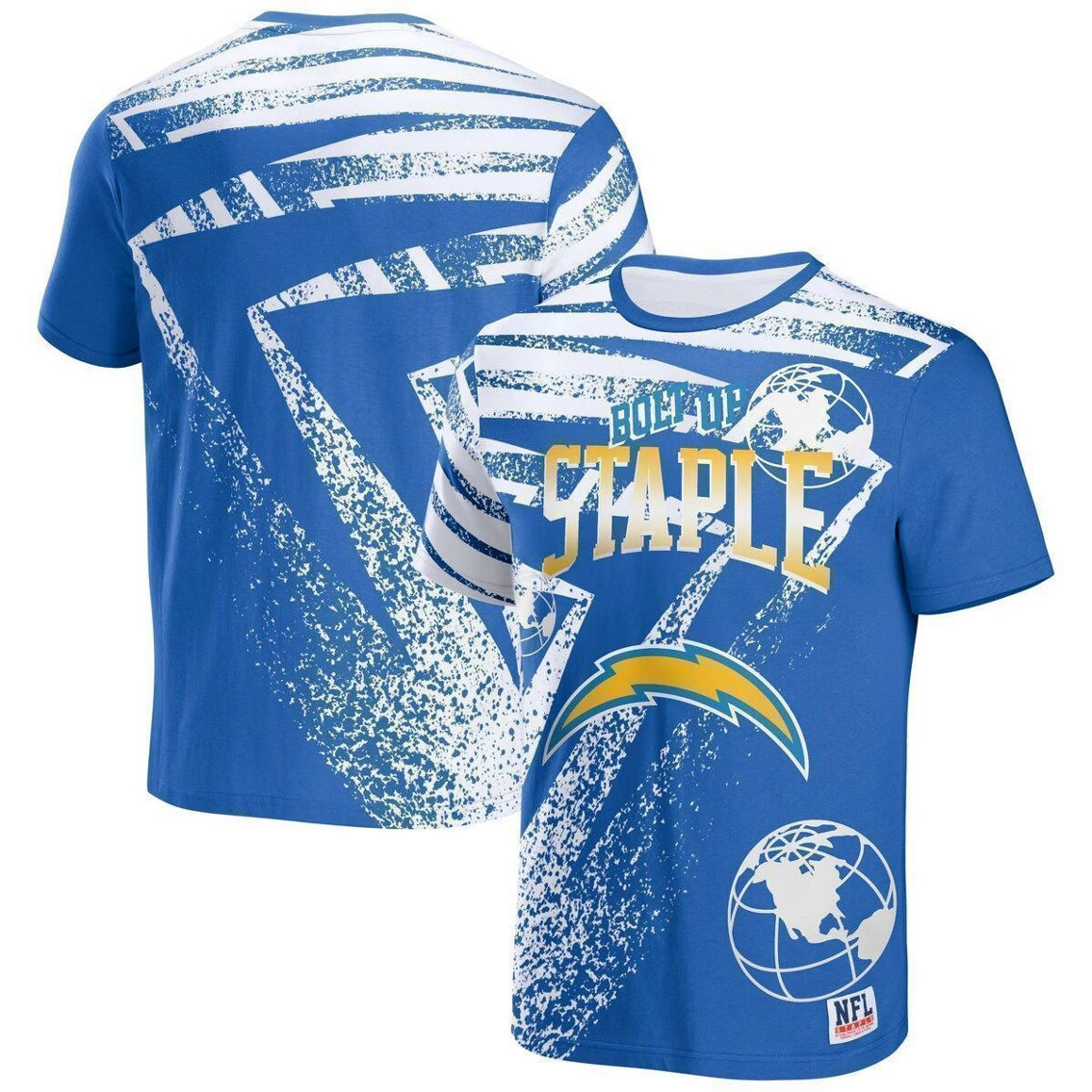 - Celebrate 25 years of streetwear from Staple by grabbing this Los Angeles Chargers NFL x Staple Collection All Over Print T-Shirt. The bold graphics embody the intersection of sport and design through the lens of street culture. Rep your team with this exclusive collection that features unmistakable Los Angeles Chargers insignia.