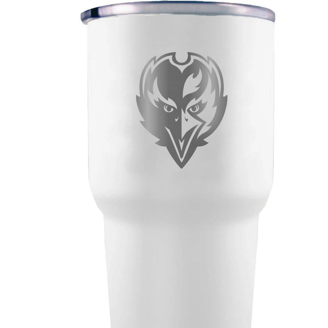 - It’s game day and you’re feeling particularly parched. Well quench your thirst and express your Baltimore Ravens devotion at the same time by getting this etched team logo tumbler. It features fantastic Baltimore Ravens graphics on the side and can hold about 30oz. of your preferred beverage.