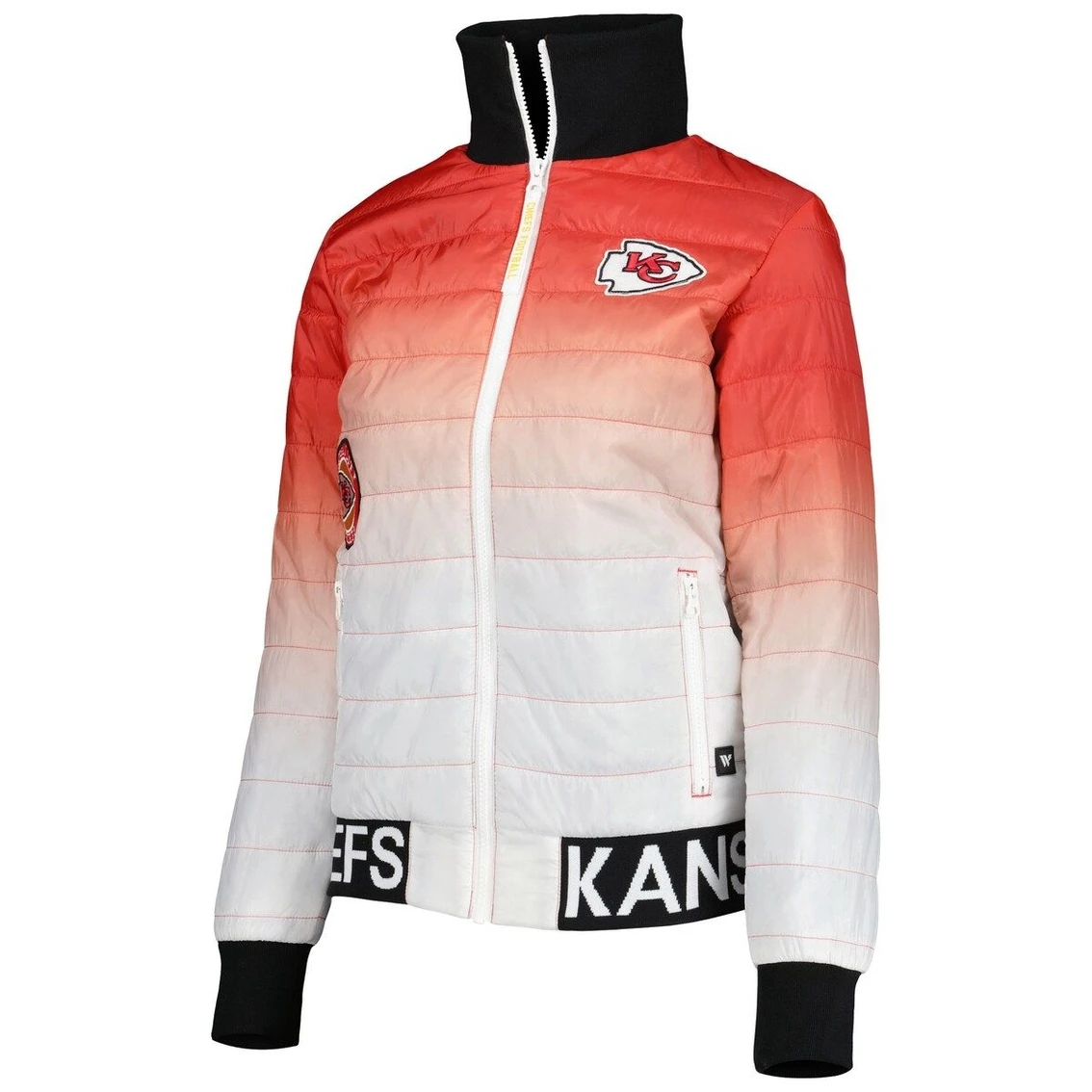 - On colder game days, rep the Kansas City Chiefs in style by sporting this Color Block full-zip puffer jacket from The Wild Collective. It features an eye-catching ombre design and multiple types of Kansas City Chiefs graphics. Zippered pockets also keep essentials secure and easily accessible.