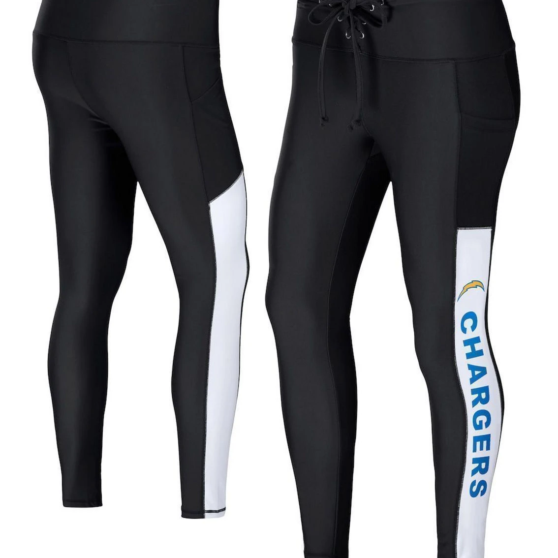 - Create a sporty, casual outfit by grabbing these Los Angeles Chargers leggings from WEAR by Erin Andrews. These versatile bottoms feature Los Angeles Chargers graphics that leave no doubt who you root for on and off game day. In addition, their compression and flexibility offer a soft, smooth feel that’s perfect for cheering on your team or running errands.