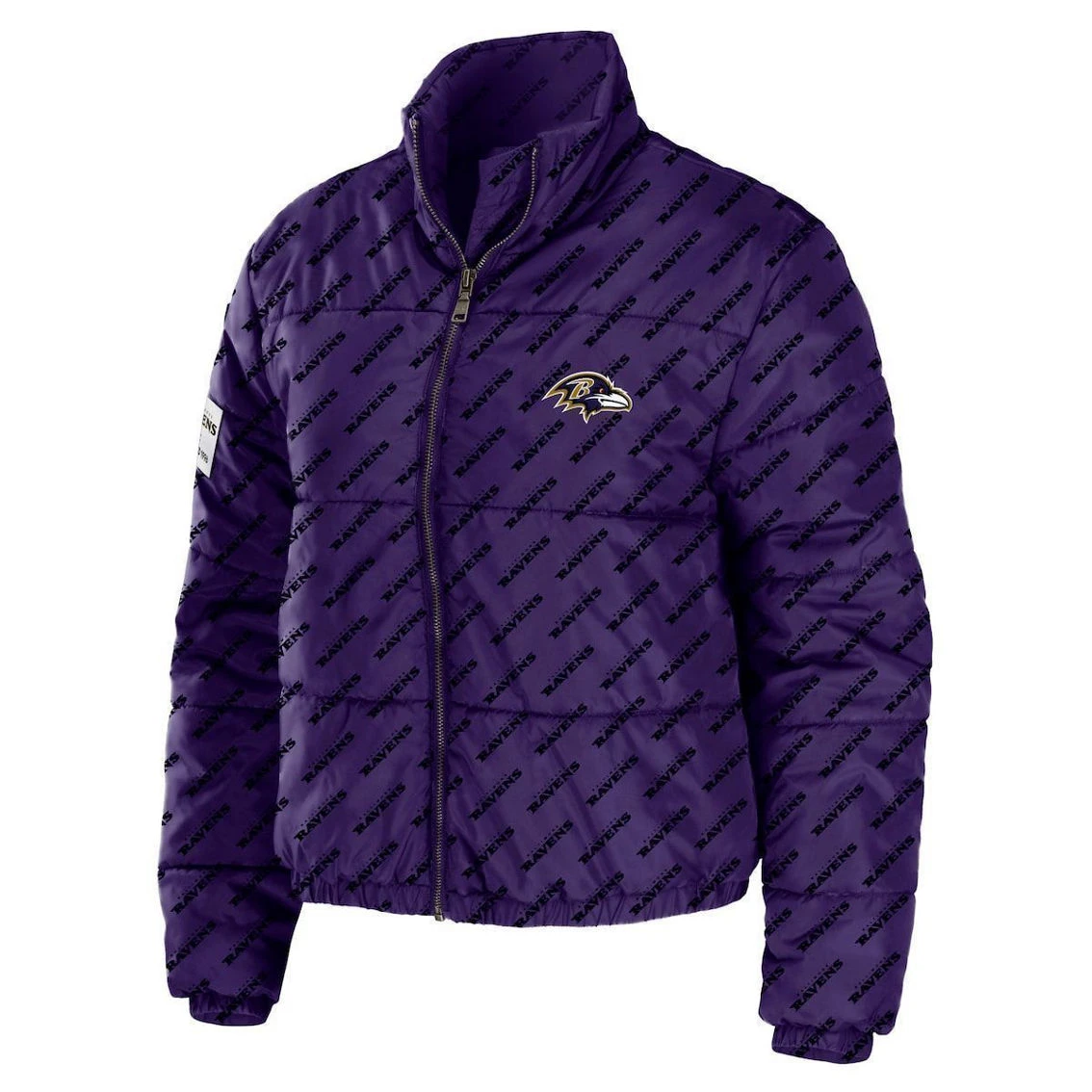- Add comfort and style to any cold day look with this Baltimore Ravens puffer jacket from WEAR by Erin Andrews. It features the team’s logo over a repeating wordmark and a matching patch on the right sleeve. The quilted design on this full-zip jacket provides extra warmth, perfect for frigid Baltimore Ravens game days.